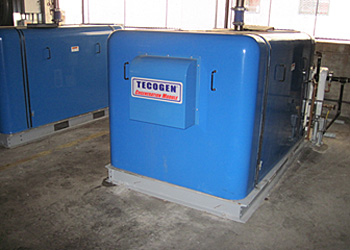 These cogeneration units provide electricity to meet some of the base load in a New York City apartment building. While the up-front and maintenance costs are significant, the cost of the natural gas used to generate electricity is less than the cost of electricity purchased from the utility. The thermal energy the engines provide—used for water heating—results in additional natural gas savings of over $10,000 per year. Photo Credit: Steven Winter Associates, Inc.